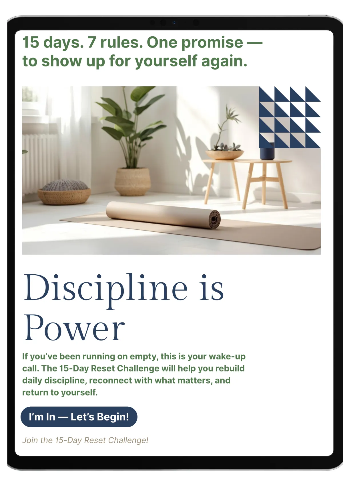 The 15-Day Reset Challenge is your invitation to slow down, realign, and rebuild momentum one small promise at a time.